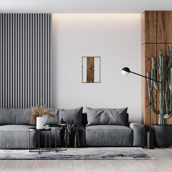 Grote verticale rechthoekige houten wandklok modern ongebruikelijk