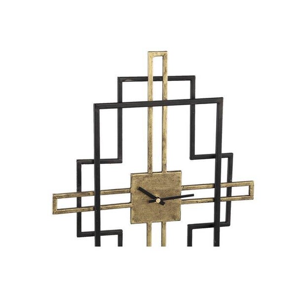 Aura is een unieke metalen klok met een geometrisch design. De klok heeft een zwarte metalen basis die stabiliteit geeft aan dit item. Het zwart met gouden frame is ook gemaakt van metaal voor een robuust en stoer uiterlijk.