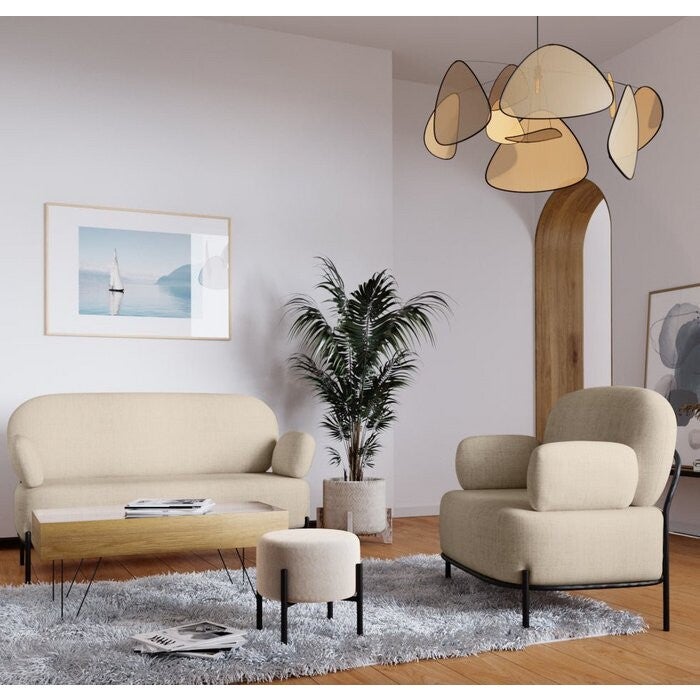 Beige design fauteuil, zwart metalen poten, Sienna Om te entertainen, om in weg te kruipen, om je appartement aan te kleden, is de beige stoffen zetel Sienna de perfecte kandidaat voor trendy cocooning. Uw dierbaren zullen versteld staan van de organische lijnen van deze intuïtief elegante designfauteuil. Een bubbel van zuurstof om van geluk in te ademen. Beige stof, 100% polyester Zwarte metalen poten Structuur in bewerkt hout Schuimvulling Afmetingen Hoogte: 80 cm Breedte: 95 cm Diepte: 71 cm To do list: Sienna, organische beige fauteuil, urgent De Sienna beige stoffen fauteuil moet worden ingedeeld in de basisbehoeften van eenvoudig geluk thuis.