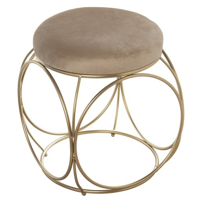 PUF TERCIOPELO CREMA C/PATAS METAAL DORADO