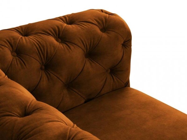 De meubellijn Violane zorgt voor een onvergetelijke visuele ervaring. Het spectaculaire en unieke design verdient speciale aandacht en zal in de smaak vallen bij wie op zoek is naar iets klassieks, maar met glamour. Violane zal elke woonkamer zeker doen opvallen en uw gasten verrassen. We hebben de meubelen bijna geheel gedecoreerd met diepe stiksels en extra stiksels in de vorm van vierkanten. Het quilten werd ook benadrukt door met stof beklede knopen. Alleen de effen kussens op de zitting doorbreken de koninklijke stijl. Rugleuning, zeer brede armleuningen en zitonderstel vormen één geheel. De bekleding is gemaakt van mooie, luxe materialen en is zeer zorgvuldig afgewerkt. De stoffen zijn zacht en slijtvast, waardoor ze jarenlang intensief gebruikt kunnen worden. De metalen poten, hoewel grillig van vorm, zijn door en door modern.
