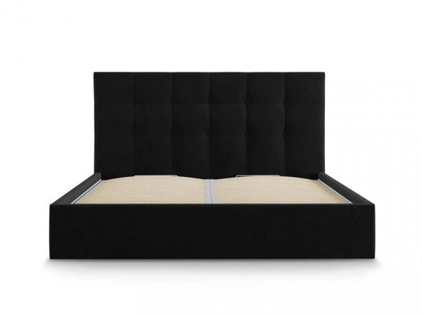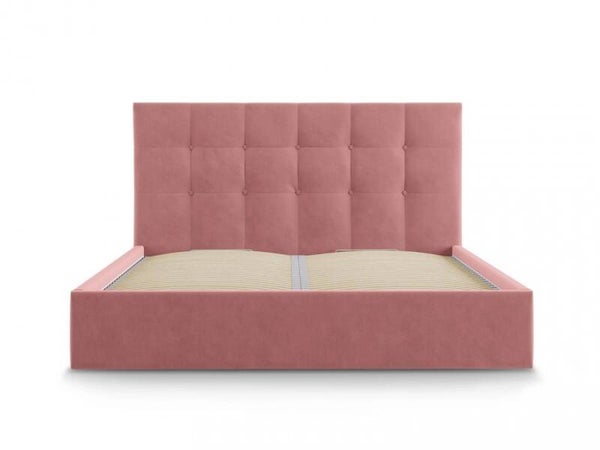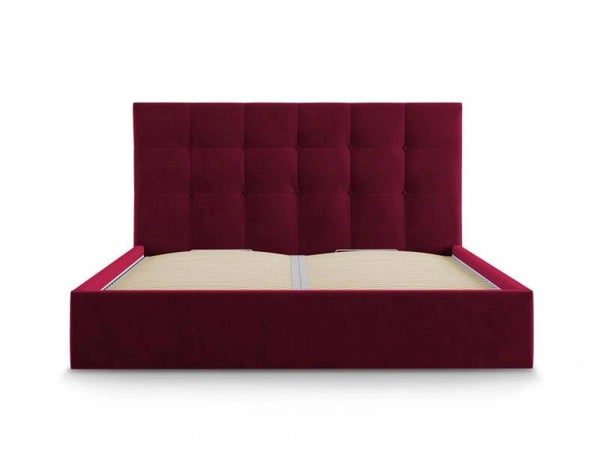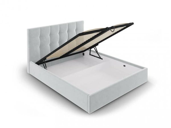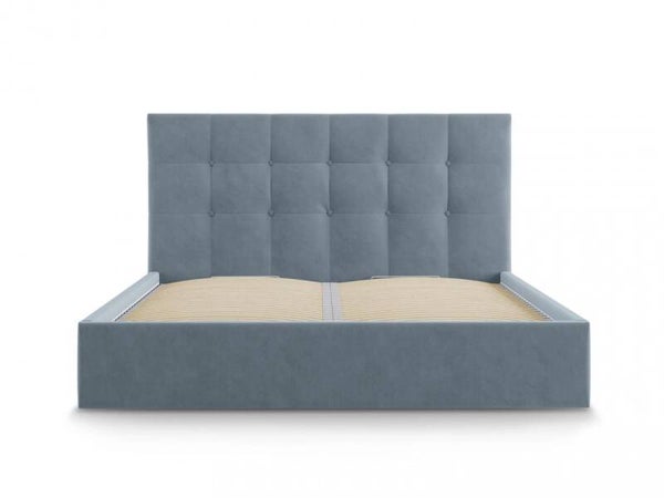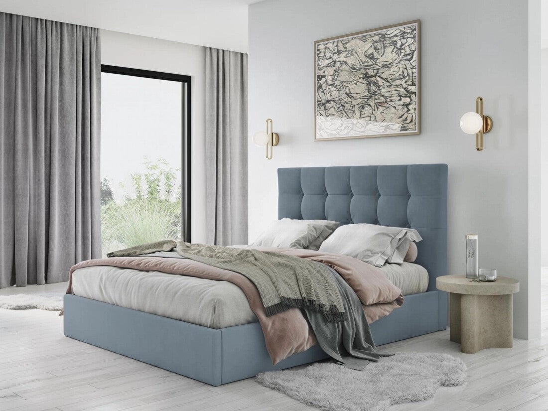 Het toneel is klaar voor een nieuwe luxe slaapkamer en het gestoffeerde tweepersoonsbed van Phaedra is de ster van de show. Het biedt niet alleen gestroomlijnde ontwerpkenmerken en een rijke maar zachte bekleding, een pluchen hoofdeinde en eigentijdse voeten die de look compleet maken, maar het bed heeft ook opbergruimte eronder. Door de strakke lijnen en ondersteunende lattenbodem ziet dit bed er altijd modern en uitnodigend uit.