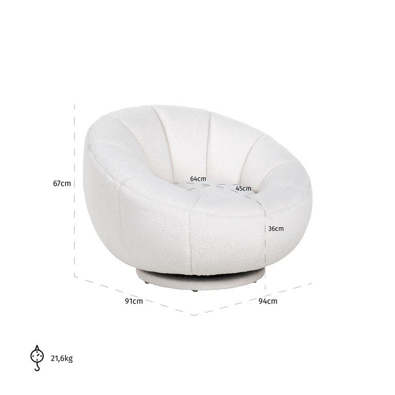 Draaifauteuil Kendall white furry (Himalaya 900 white furry) - Richmond