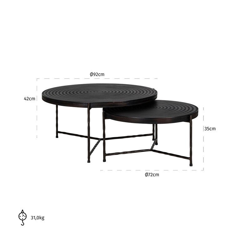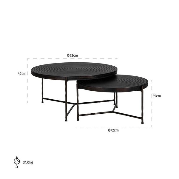 Hoogte product (cm) 42.0Breedte product (cm) 92.0Diepte product (cm) 92.0Materiaal iron, aluminiumExtra Informatie Set of 2 small table 35x72x72