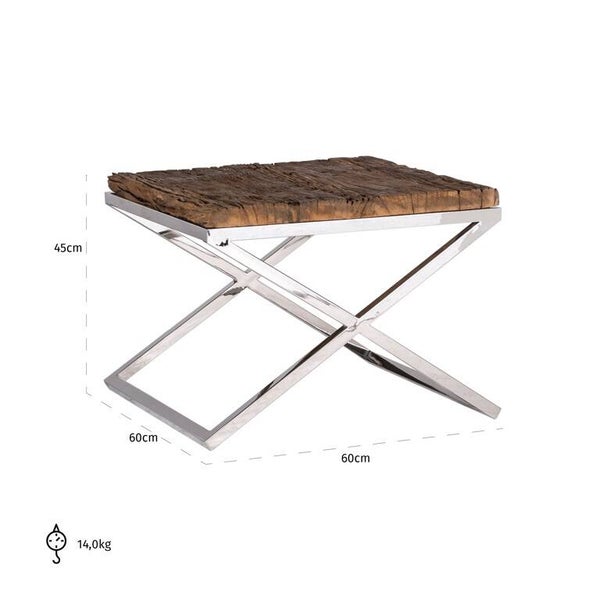 Hoogte product (cm) 45.0Breedte product (cm) 60.0Diepte product (cm) 60.0Materiaal Top: Recycled Wood | Legs: Stainless Steel