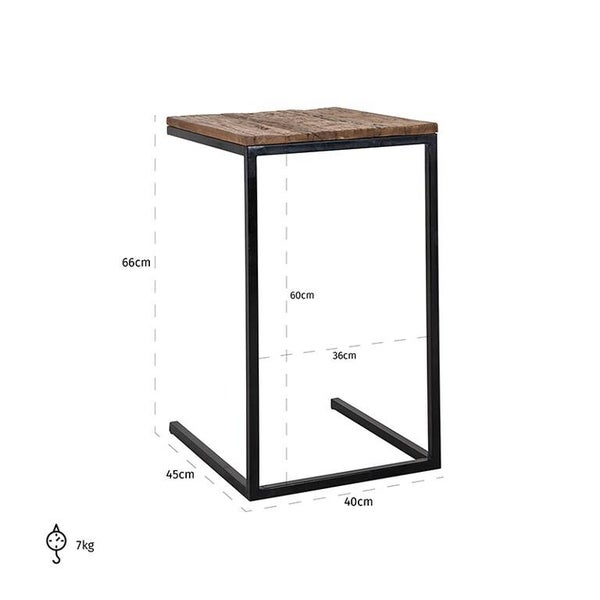 Hoogte product (cm) 66.0Breedte product (cm) 40.0Diepte product (cm) 45.0Materiaal Top: Recycled wood | Legs: Iron