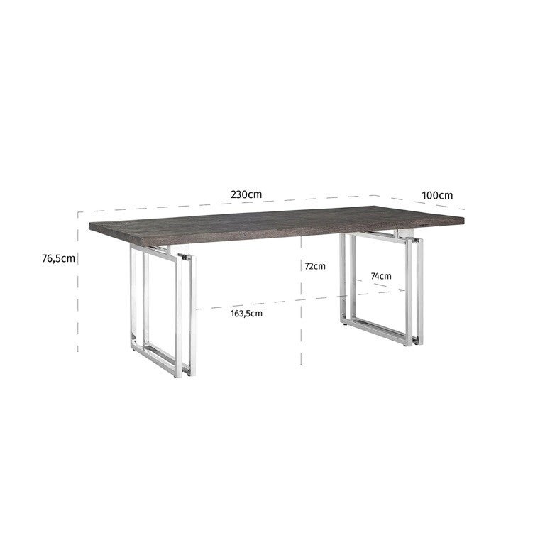 Hoogte product (cm) 76.5Breedte product (cm) 230.0Diepte product (cm) 100.0Materiaal Top: Acacia Wood | Legs: Stainless Steel