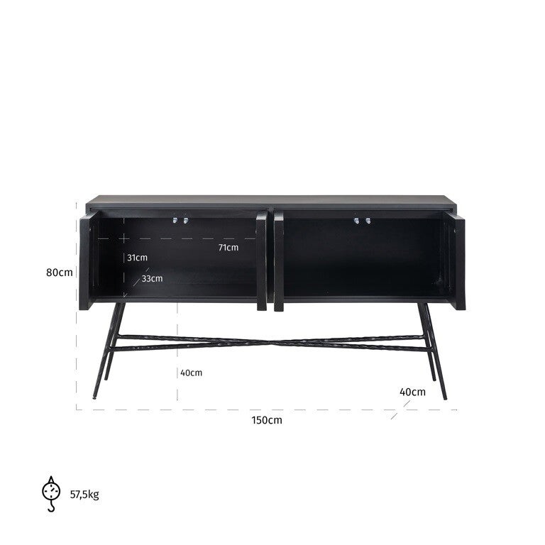 Hoogte product (cm) 80.0Breedte product (cm) 150.0Diepte product (cm) 40.0Materiaal marble, mango, MDF, iron