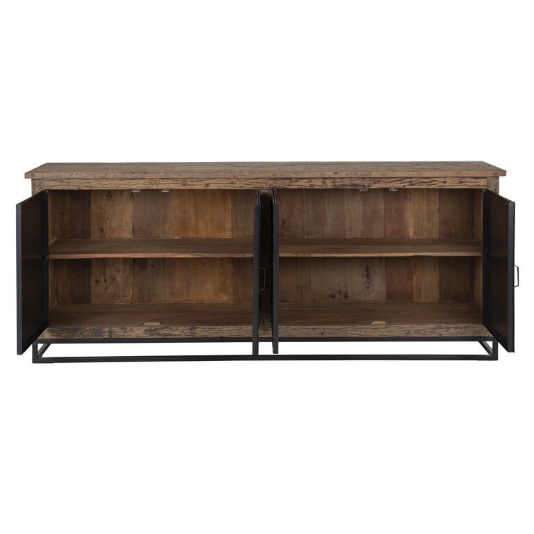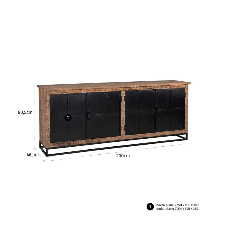 Hoogte product (cm) 80.5Breedte product (cm) 200.0Diepte product (cm) 46.0Materiaal Top: Recycled wood | Legs/doors: Metal