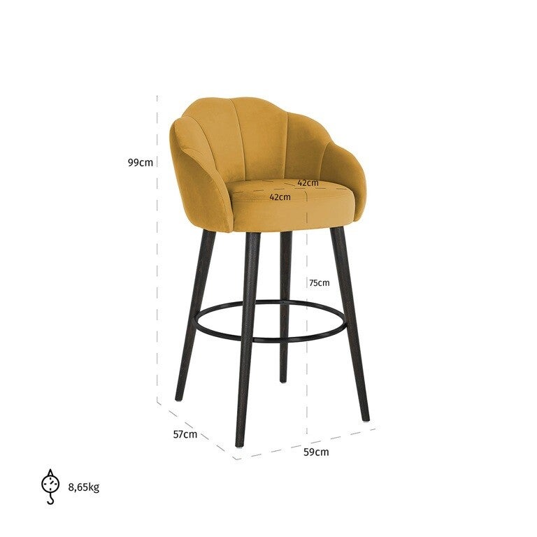 Hoogte product (cm) 99.0Breedte product (cm) 59.0Diepte product (cm) 57.0Materiaal Fabric: Quartz Oaker 100% Polyester | Legs: beech black