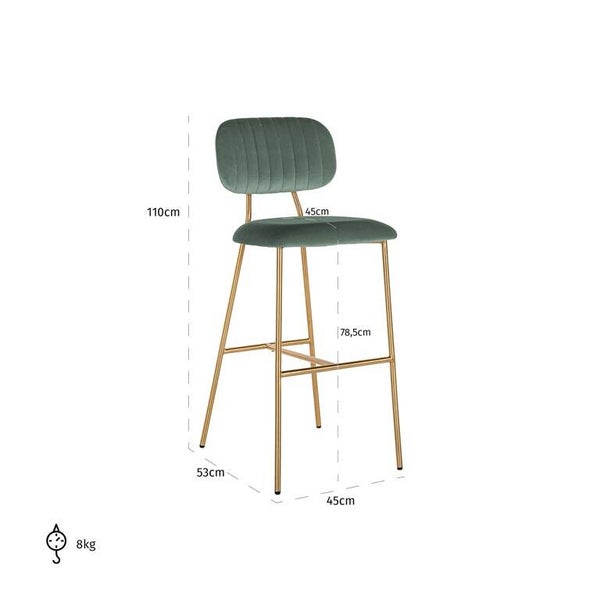 Hoogte product (cm) 109.5Breedte product (cm) 45.5Diepte product (cm) 53.0Materiaal Fabric: 100% Polyester | Frame: SS Brushed Gold / Foam / Plywood