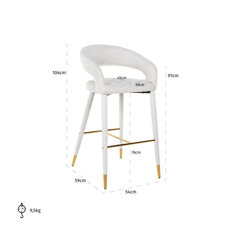 Hoogte product (cm) 103.0Breedte product (cm) 53.5Diepte product (cm) 59.0Materiaal Fabric: 100% Polyester | Foam / Plywood Legs: SS