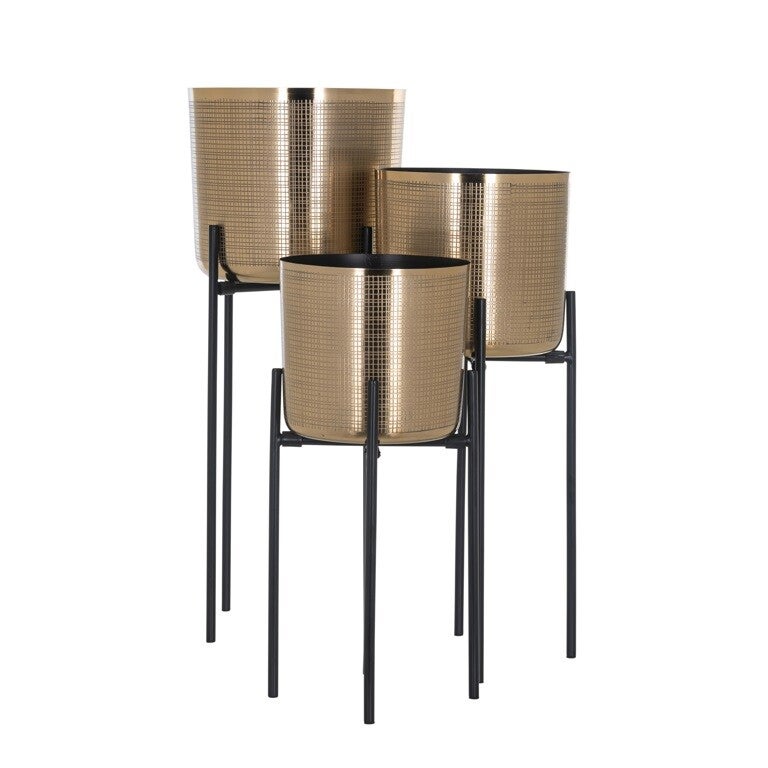 Bloempot Kyara set van 3 (Black/gold) - Richmond