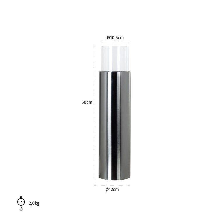 Hoogte product (cm) 50.0Breedte product (cm) 12.0Diepte product (cm) 12.0Materiaal Stainless steel / Glass