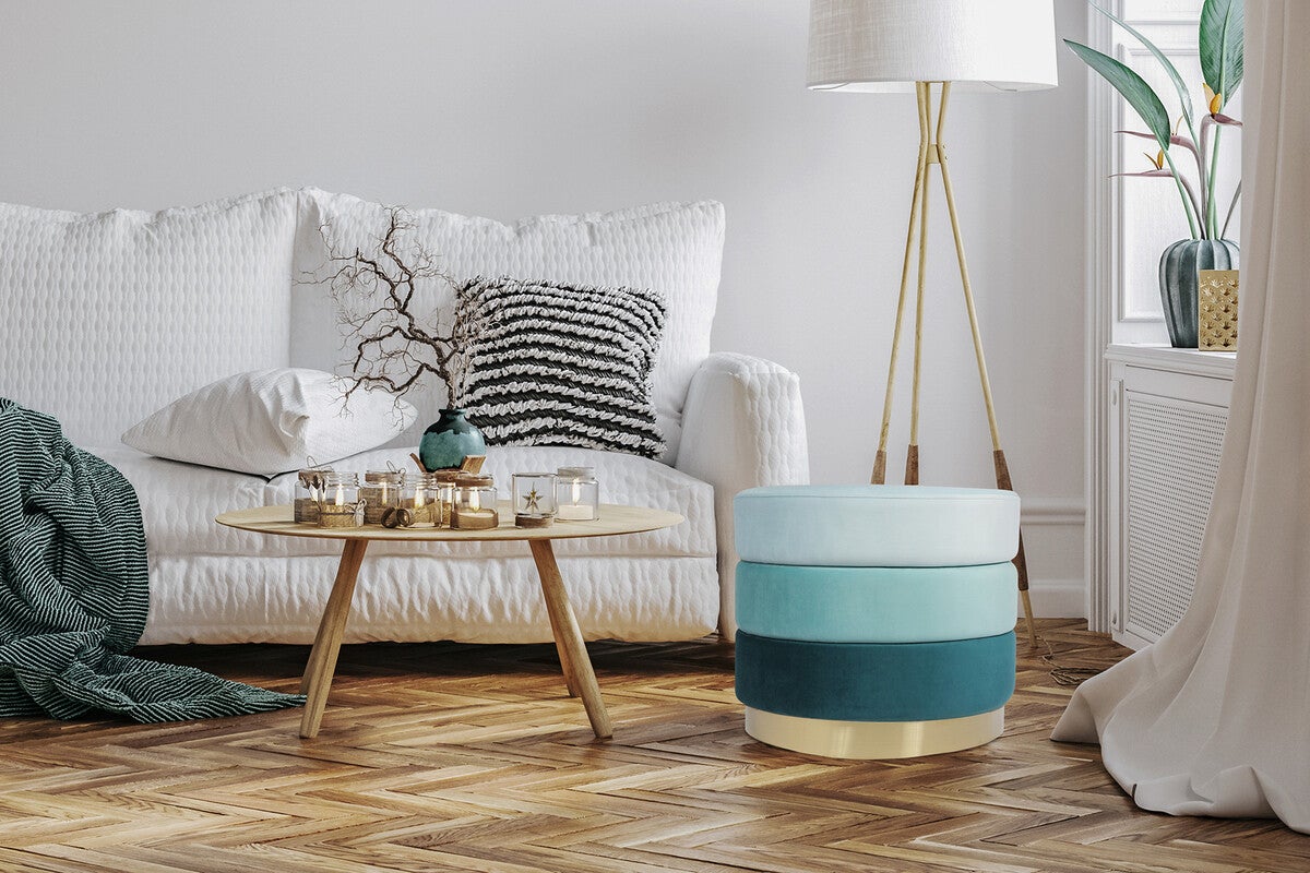 Deze prachtige ronde kruk heeft een fluweelzachte polyester stoffen bekleding. De perfect op elkaar afgestemde, gelaagde kleuren van de bekleding versterken uw ruimte met deze unieke look. Het gouden onderstel van roestvrij staal geeft de kruk een edele en onderscheidende touch. De kleurrijke maar onopvallende tinten geven uw kamer een fris gevoel, wat de feel-good factor van alle bewoners en bezoekers merkbaar lijkt te verhogen.
