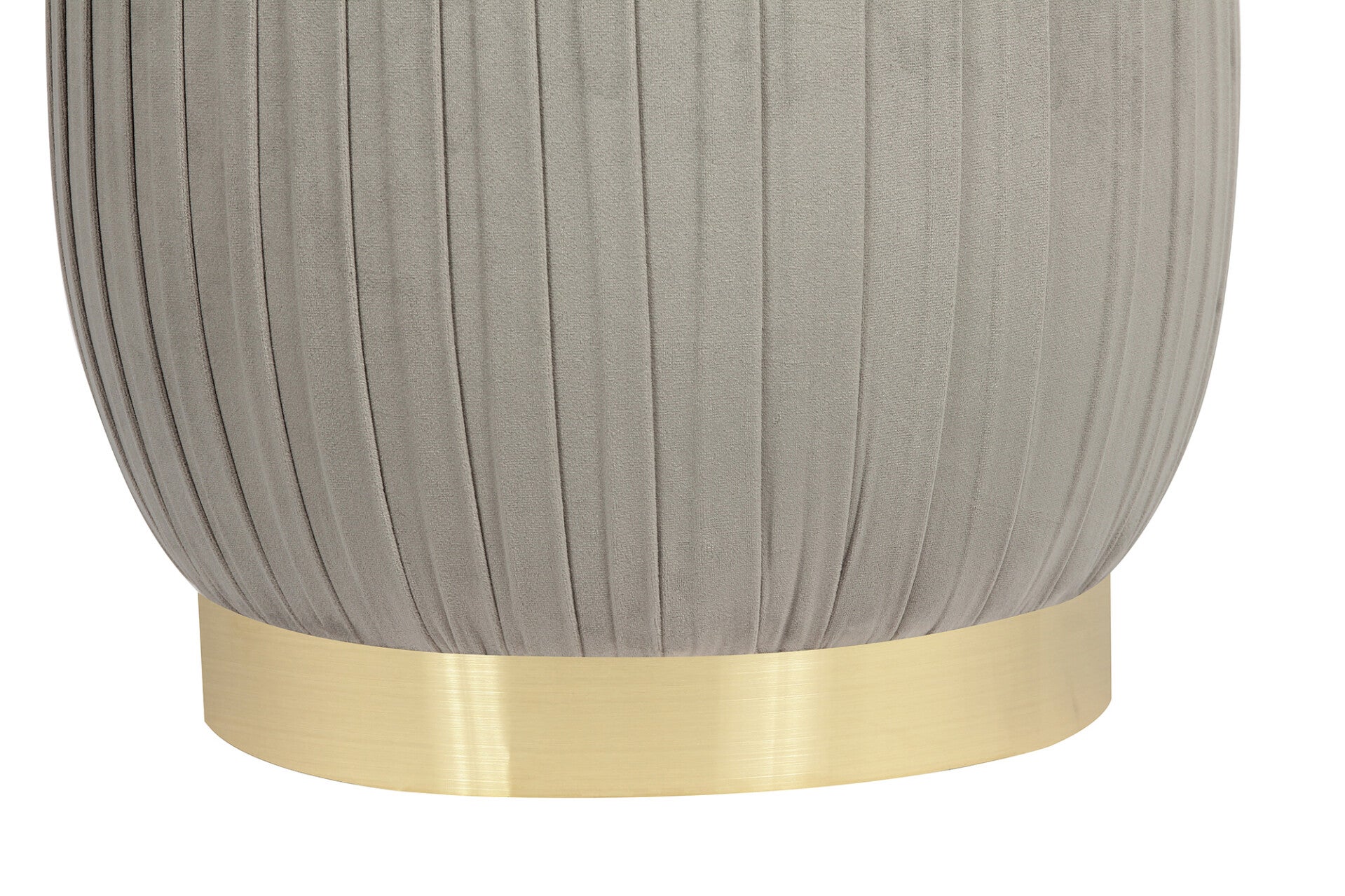 Deze prachtige ronde kruk heeft een fluweelachtige stoffen bekleding van polyester. De doorgestikte siernaden zorgen voor een