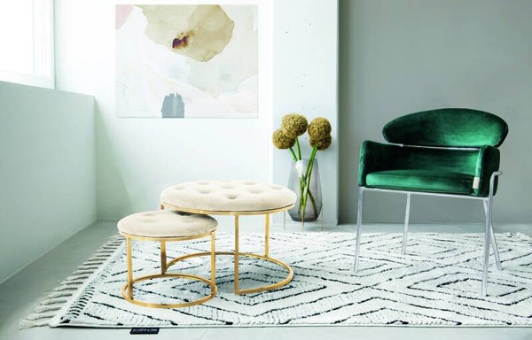 Deze prachtige ronde krukken in een set van 2 hebben een fluweelzachte polyester stoffen bekleding. Deze krukken