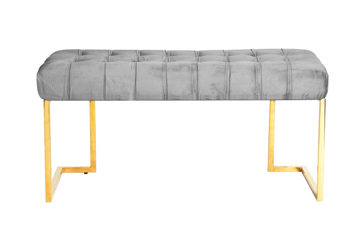 Deze prachtige bank heeft een fluweelachtige stoffen bekleding van polyester. De zachte bekleding is doorgestikt met sierknopen en nodigt uit tot comfortabel vertoeven op meerdere stoelen. Het gouden, hoekige metalen frame geeft de bank een moderne uitstraling en brengt pit in je huis. Met zijn neutrale tinten biedt de bank een onopvallende, hoogwaardige