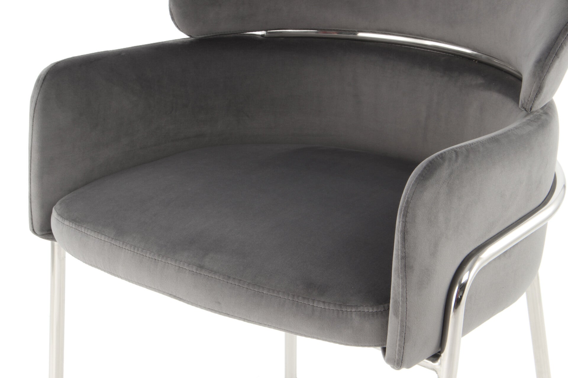 ongebruikelijk frame gemaakt van hoogwaardig roestvrij staal in zilver of roségoud. De zitting en rugleuning zijn comfortabel gestoffeerd