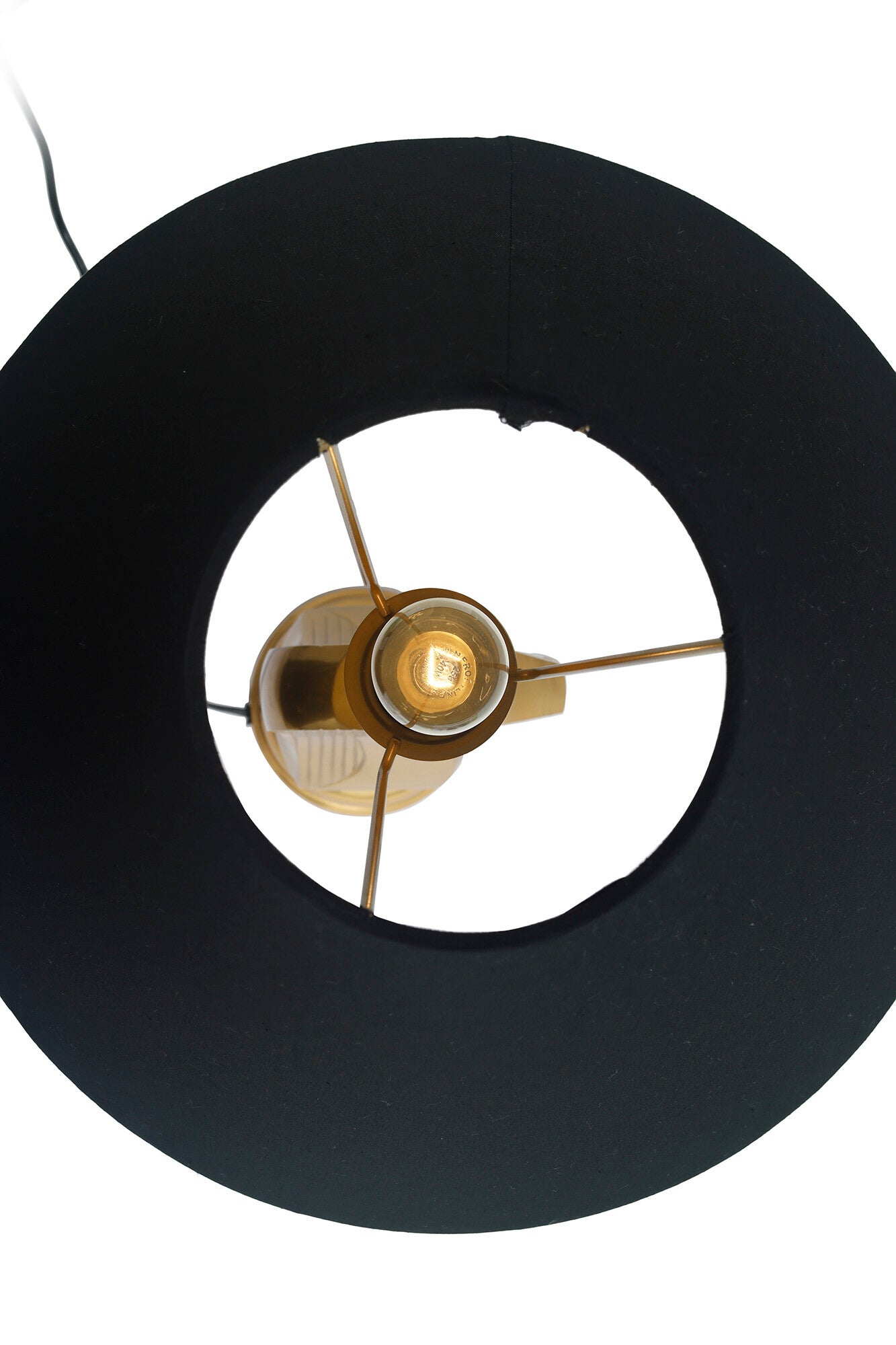 Materiaal: 80% aluminium, 20% messing; Lampenkap: katoen, polysatijn