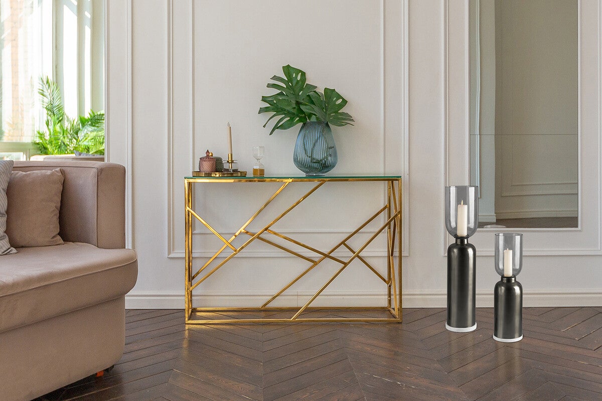 Elke kaars, hoe klein ook, kan warmte toevoegen aan een kamer. Deze stijlvolle en grote vloerkandelaar nodigt je uit om je goed te voelen en des te meer te ontspannen. Antiek goud of grijs geven de rechte, eenvoudige vorm een elegante uitstraling die perfect harmonieert met elk interieur. De kandelaar is verkrijgbaar in verschillende kleuren en maten en creëert, zeker met andere lantaarns, een sfeervolle, gezellige sfeer die elke gast weet te waarderen. De kandelaar, handgemaakt van glanzend metaal, is stabiel en antislip dankzij de geïntegreerde marmeren voet, terwijl een lange glazen cilinder de kaars elegant omlijst en beschermt tegen tocht. Of het nu gaat om een romantisch diner bij kaarslicht of ontspannen in de tuin,