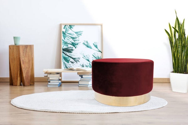 Materiaal: Zitting: fluweelachtige stoffen bekleding van 100% polyester, schuim; Frame: 100% dennenhout, MDF, roestvrij staal