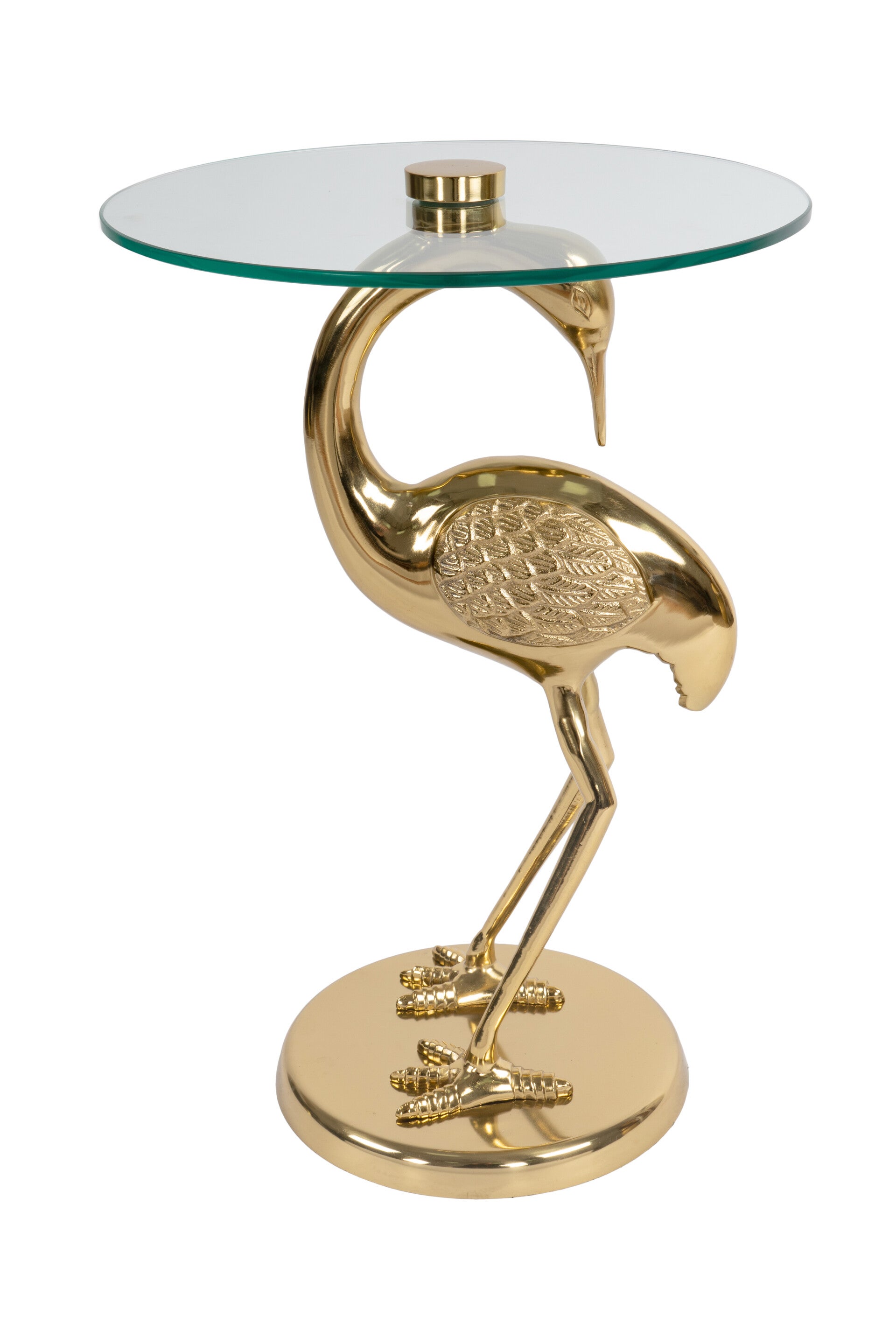 Bijzettafel met diervormig frame Deze bijzettafel is een absolute blikvanger. De lijst in de vorm van een sierlijk dier zorgt voor een bijzondere en spannende sfeer in de kamer. Tegelijkertijd straalt de tafel een glamoureuze sfeer uit dankzij de elegante kleurstelling en het transparante glazen tafelblad. Breng een gevoel van luxe in uw vier muren en rust uw woonkamer, slaapkamer of entree uit met de stijlvolle bijzettafel met diervormig frame. De bijzettafel doet dienst als praktisch opbergvlak in elke ruimte, maar komt door zijn extravagante vormgeving ook helemaal tot zijn recht wanneer hij is voorzien van decoratieve items of volledig ongebruikt is. Het metalen frame van de tafel ziet er niet alleen goed uit, maar zorgt ook voor de nodige stabiliteit. Het metaal van het frame en het glas van het tafelblad zijn eenvoudig schoon te vegen. De werkelijke kleur van de tafel kan afwijken van de foto's.