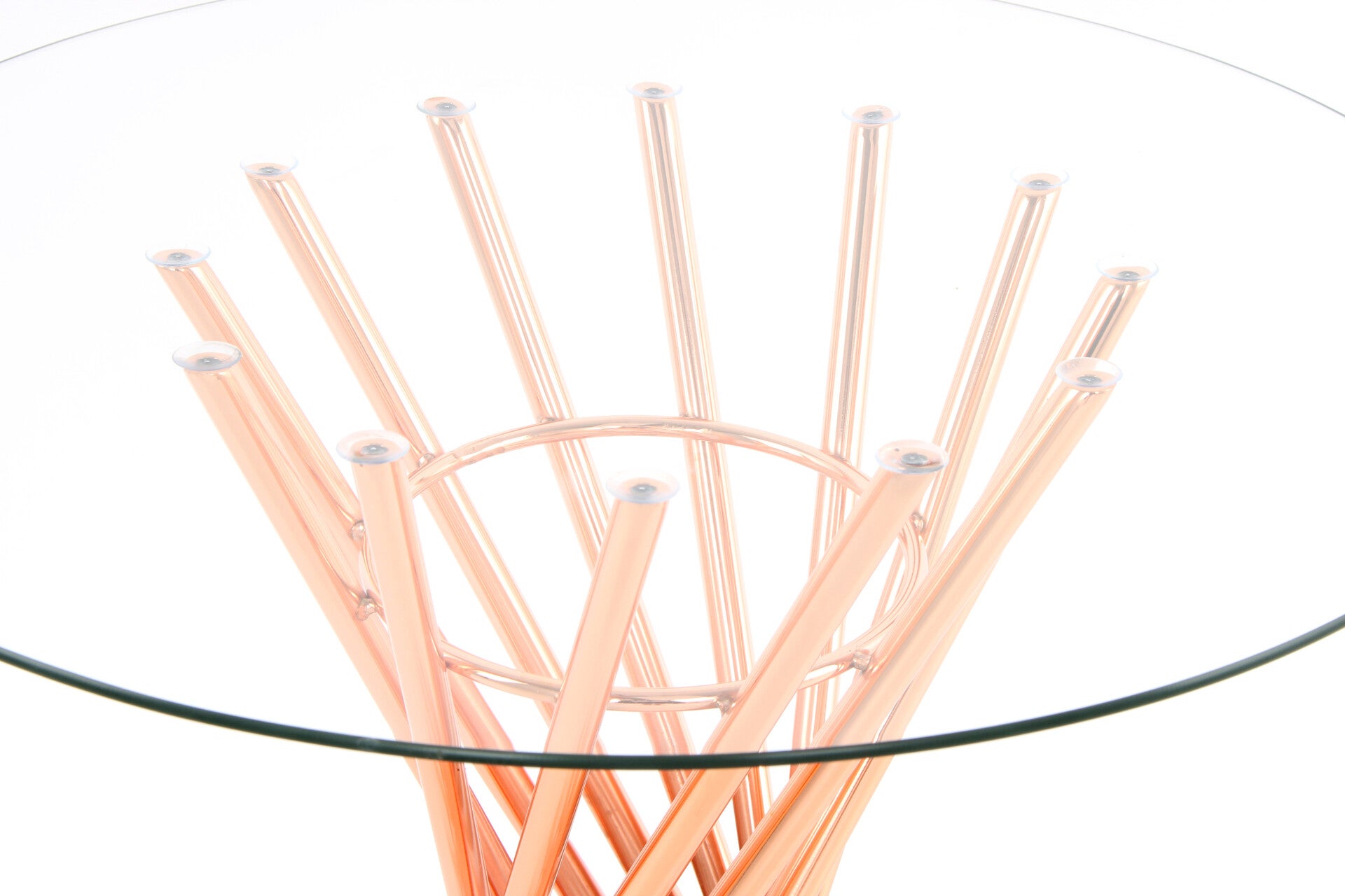 Noble moderne bijzettafel Deze elegante bijzettafel maakt indruk met zijn ronde glazen tafelblad en stijlvol gedraaid metalen frame. Het nobele kleurdesign geeft je huis een luxueus karakter, in welke ruimte je de tafel ook plaatst. Zowel in de woonkamer als in de entree is de bijzettafel een decoratief meubelstuk dat ook praktische opbergruimte biedt. Plaats elegante decoraties zoals schalen, vazen of beeldjes op de kleine tafel en creëer een nobele sfeer in de kamer waarin u zich prettig voelt. De werkelijke kleur van de tafel kan afwijken van de foto's.