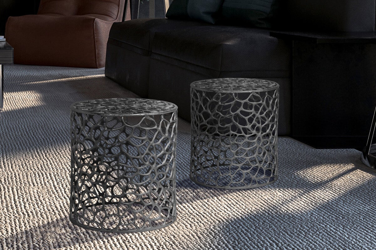 Ultieme eye-catcher voor in huis Deze set bijzettafels is een prachtig bewerkte, zeer bijzondere blikvanger. Hij maakt indruk met zijn buitengewone design. Het liefdevol vervaardigde patroon laat de harten van decoratie-experts sneller kloppen. Of het nu gaat om praktisch gebruik of decoratief geënsceneerd, de tafel is absoluut uniek voor uw eigen huis. De bijzettafel is verkrijgbaar in verschillende kleuren en wordt geleverd in een dubbelverpakking. Het is handgemaakt in fantastische stijl en verkrijgbaar in verschillende vormen. Afhankelijk van je smaak is er voor ieder wat wils. De verschillende maten van de set geven je alle vrijheid om je voorkeuren te bepalen. Afhankelijk van de lichtinval en lichtinval kan er een kleurafwijking optreden tussen het origineel en de afbeelding.