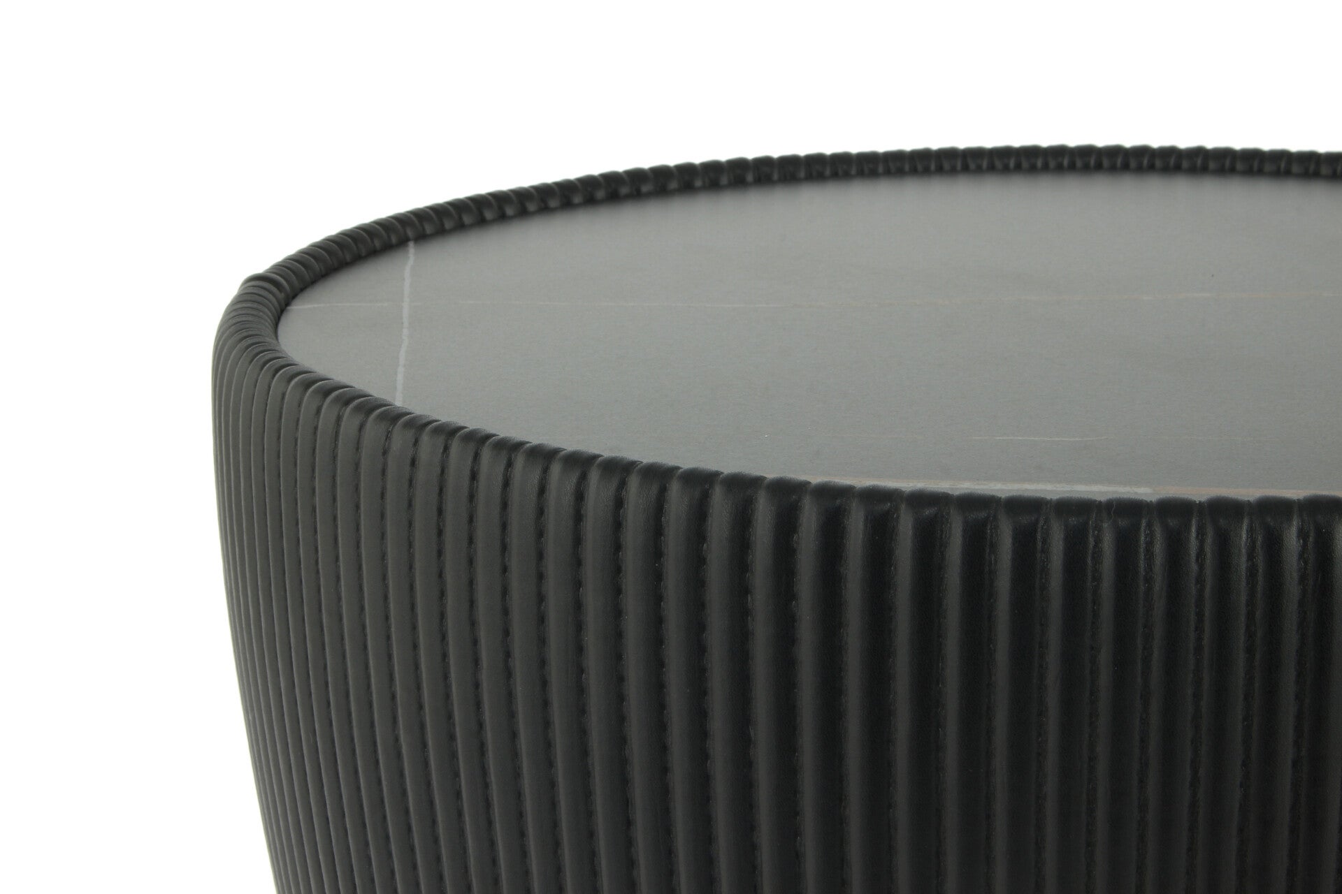 Decoratieve bijzettafel van ijzer met PU hoes en gesinterde stenen plaat Met zijn ijzeren frame, luxe PU hoes en modern gesinterd stenen blad is deze bijzettafel een stijlvolle, decoratieve bijzettafel in elk huis. De kleine woonkamertafel heeft een glad, breed oppervlak dankzij het robuuste blad van gesinterd steen, waarop verschillende decoratieve voorwerpen, tijdschriften of zelfs drankjes kunnen worden geplaatst en uitgestald. Deze bijzettafel dankt zijn stabiliteit aan het robuuste ijzeren frame, de duurzame PU hoes en de resistente gesinterde stenen plaat. Zowel buiten als binnen is dit kleine, decoratieve tafeltje door zijn moderne en stijlvolle uitstraling geschikt als leuke woonaccessoire.