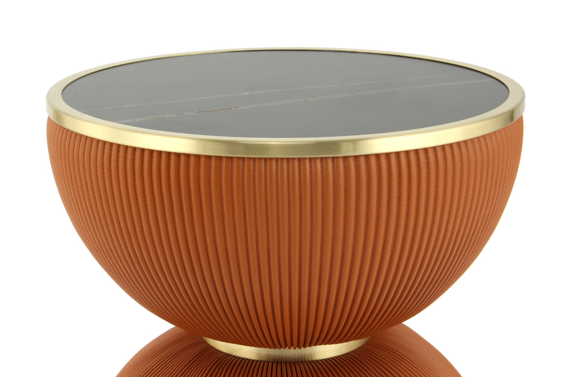 Bijzettafel met sinterstenen blad op ijzeren frame Deze combinatie van kunstzinnige bekleding in PU-stof en het gladde, stijlvolle blad van gesinterd steen op een robuust ijzeren frame maakt van deze bijzettafel een uitstekend decoratief woonaccessoire in elke woonkamer. Met zijn stevige ijzeren frame doet deze kleine tafel het uitstekend als opbergtafel voor glazen drankjes, salontafel of opbergtafel voor kleine planten. De combinatie van het gesinterde stenen blad, het ijzeren frame en de bekleding van PU-stof maakt de tafel bijzonder onderhoudsvriendelijk, wat de duurzaamheid en duurzaamheid garandeert. Of het nu buiten is op warme zomerdagen op het balkon of terras of het hele jaar door binnenshuis, deze bijzettafel is altijd een praktisch, stijlvol woonaccessoire.
